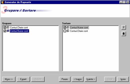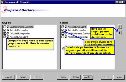 In primul rand se aleg campurile dupa care se va sorta raportul prin bifarea lor.