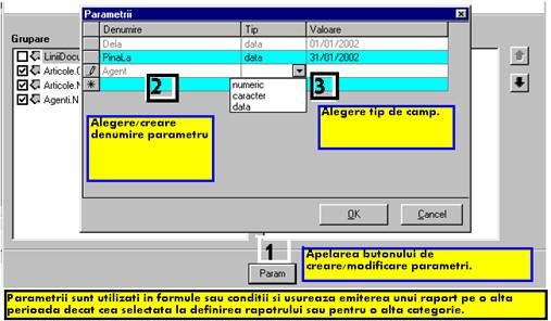 Parametri: Pentru a putea rula un raport si altadata, datele