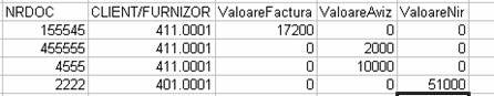 Pentru coloana ValoareFactura trebuie stabilit sa insumeze numai acele documente care sunt facturi , pentru ValoareAvize sa insumeze numai operatiunile care sunt avize si asa mai departe pentru fiecare coloana.