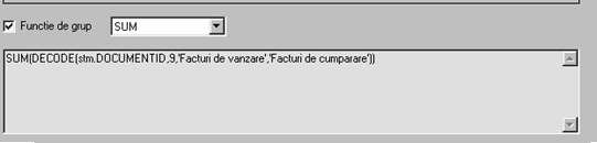 In cazul nostru trebuie sa "grupam" raportul dupa toate campurile asupra carora nu a fost aplicata o functie de grup si care poate avea valori diferite in tranzactiile selectate pentru raport.