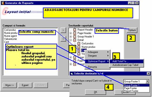 Este necesar sa se defineasca formule in rapoarte care prezinta informatii diferite pe coloane (ex pe o coloana vanzari , pe alta coloana avize, pe alta coloana cumparari etc) atunci cand aceste informatii trebuie supuse unor sumari sau calcule.