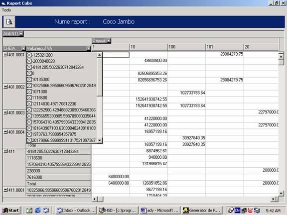 Campurile selectate in raport pot fi afisate cu toate valorile lor din baza de