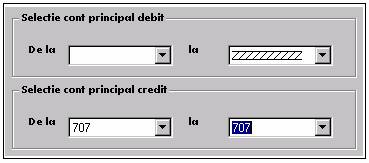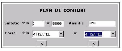 Selectia in functie de codul sintetic are drept scop afisare tuturor conturilor care au un anumit sintetic sau au sintetice apartinand unui interval.