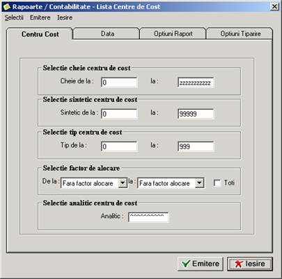Pot fi selectati si doar acei centrii de cost pentru care s-au inregistrat anumiti factori de alocare, sau care au fost definiti intr-o anumita perioada (selectia din tab-ul de Data).