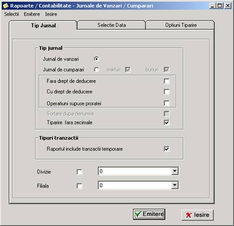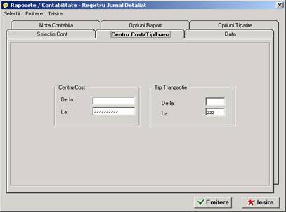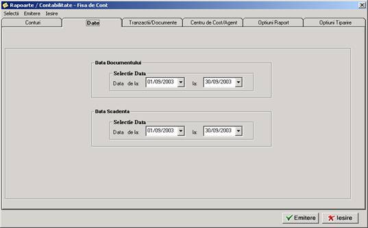 Alte selectii pot fi pentru intervale de data (cand se doresc de exemplu doar tranzactiile dintr-o anumita perioada) sau pe tipuri de documente, de note contabile, etc.