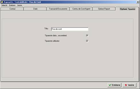 In tab-ul Optiuni Raport se va alege metoda de ordonare a conturilor pe raport: dupa cheie sau dupa denumire.