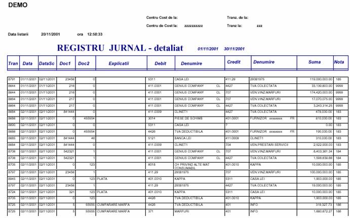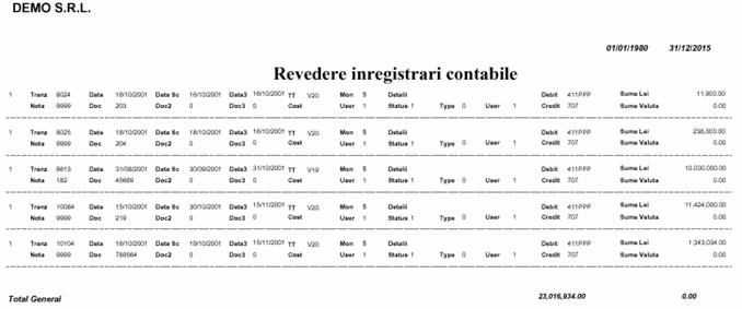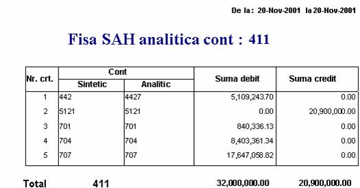 Ex: realizand selectia de la 401 la 401, Analitic **** Cheie de la 0 la zzzzzzzzzzzz si bifand metoda de sortare dupa cheie raportul poate arata astfel: