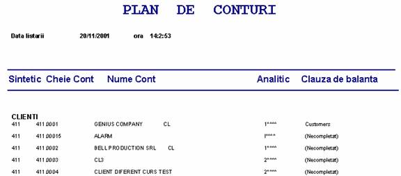- Daca doriti sa emiteti un raport pentru toti clientii, a caror cod sintetic este 411, completati datele in felul urmator: