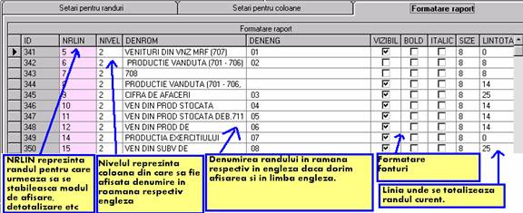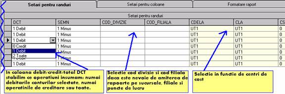 Primul pas in definirea unui raport nou este stabilirea numarului de raport dupa care urmeaza adaugarea de linii in grila de selectie: