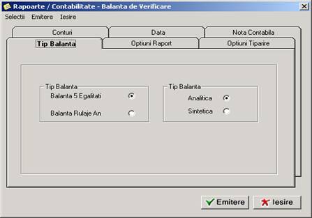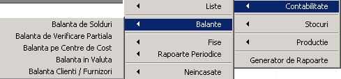 Rapoarte balanta: Balanta de solduri si cea de verificare (partiala balanta pe centre de cost si balanta in valuta.