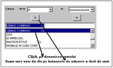 b)      cunoastem denumirea contului si vrem sa regasim cheia de cont in functie de acesta procedand astfel: