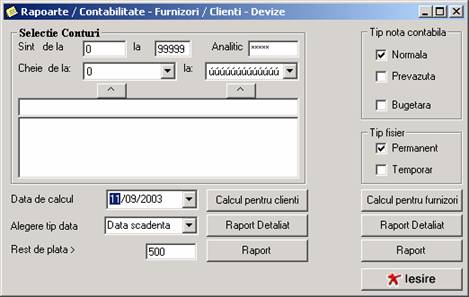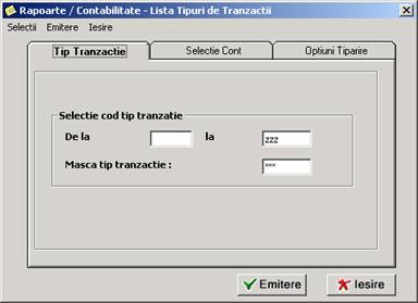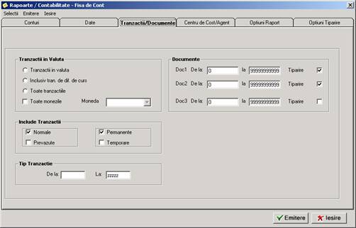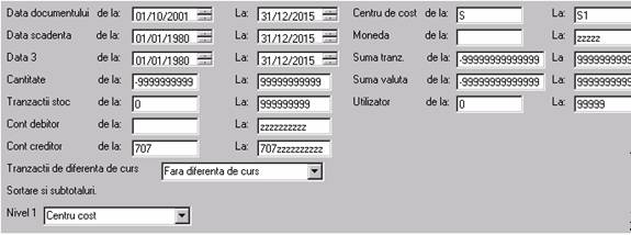 Alte selectii pot fi pentru intervale de data (cand se doresc de exemplu doar tranzactiile dintr-o anumita perioada) sau pe tipuri de documente, de note contabile, etc.