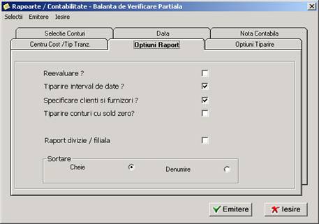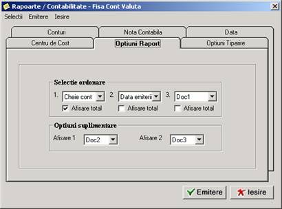 In tab-ul Optiuni Raport se va alege metoda de ordonare a conturilor pe raport: dupa cheie sau dupa denumire.