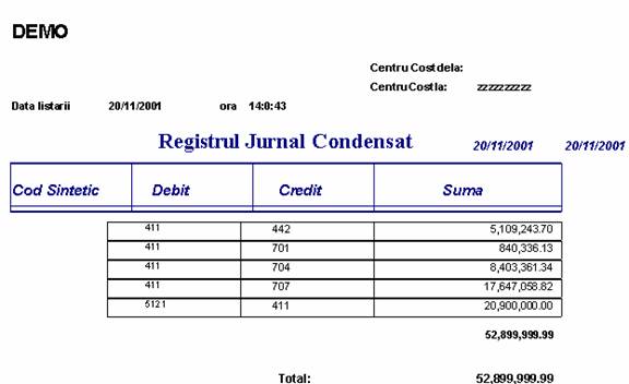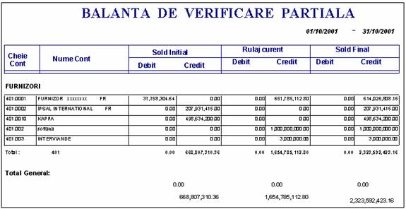 Ex: realizand selectia de la 401 la 401, Analitic **** Cheie de la 0 la zzzzzzzzzzzz si bifand metoda de sortare dupa cheie raportul poate arata astfel:
