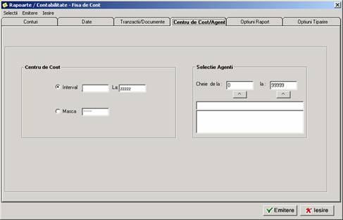 - Daca doriti sa emiteti un raport pentru toti clientii deserviti de agentul nr.7, unde agentul este inregistrat ca fiind cel de al doilea caracter al cimpului "Cod analitic" completati datele in felul urmator: