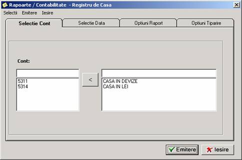 - Daca doriti sa emiteti un raport referitor la un singur cont, a carei cheie este, de exemplu: 5121.01, completati datele in felul urmator: