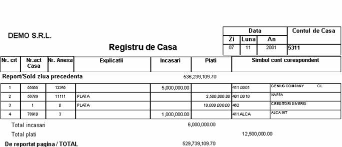 Afiseaza detaliat raportul precedent in sensul ca nu afiseaza incasarile cumulat ci le afiseaza pe toate. Raportul arata astfel: