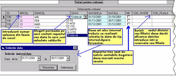 Primul pas in definirea unui raport nou este stabilirea numarului de raport dupa care urmeaza adaugarea de linii in grila de selectie:
