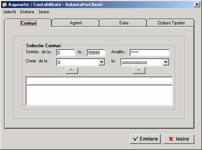 - Daca doriti sa emiteti un raport pentru toti clientii, a caror cod sintetic este 411, completati datele in felul urmator: