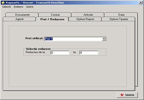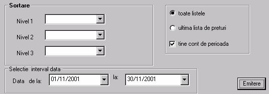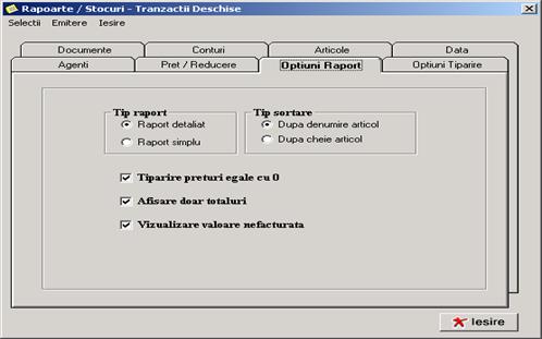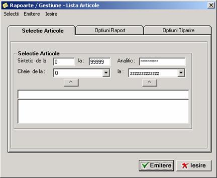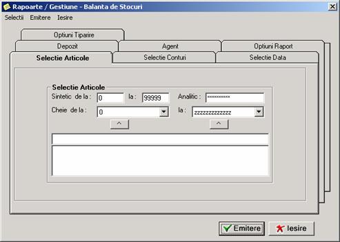 Din fereastra de selectie pot fi emise urmatoarele tipuri de rapoarte: