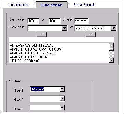 Si din acest raport se pot actualiza preturile initial si final in listele de preturi aferente articolelor:
