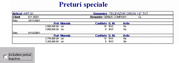 Daca nu bifam includere preturi inactive nu sunt luate in raport variantele de pret marcate ca fiind inactive (neaplicabile)
