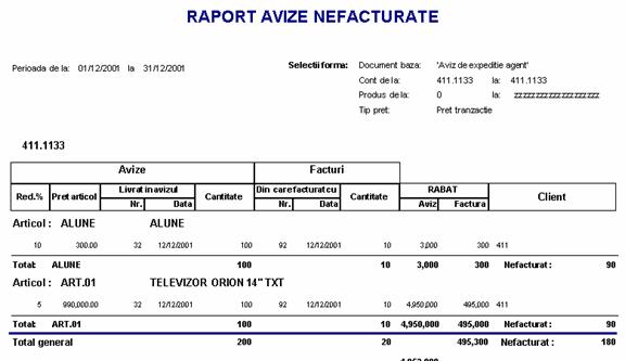 Aceasta facilitate poate fi folosita mai departe pentru realizarea unui raport Top ABC pe Articole.