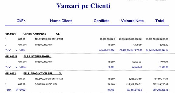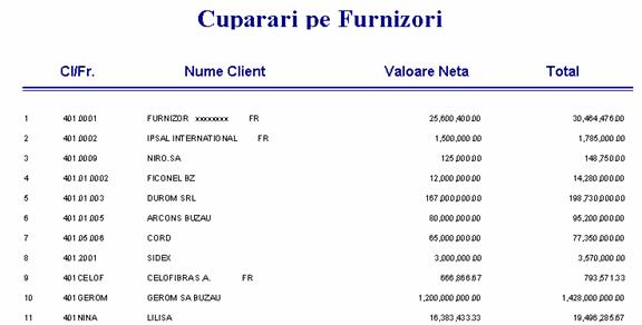 Daca nu se bifeaza "Specificare Clienti/Furnizori", raportul arata astfel: