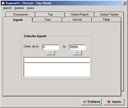 Este un raport care tipareste lista de depozite sau lista de agenti de vanzari (partiala sau totala), in functie de selectia dorita.