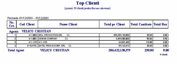 Raportul afiseaza topul clientilor pe agenti de vanzari.