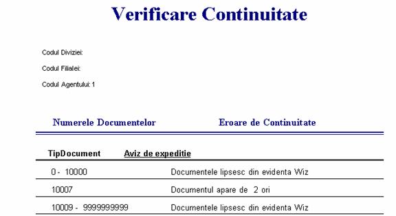 Acest raport verifica continuitatea documentelor pe intervalul de numere selectat si pe tipul de document.
