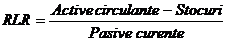2.Rata lichiditatii rapide(RLR) exprima capacitatea intreprinderii de a-si onora datoriile pe termen scurt din acele active circulante care pot fi transformate rapid in lichiditati,adica din creante,disponibilitati banesti si investitii financiare pe termen scurt.