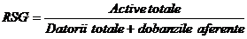 1.Rata solvabilitatii generale(RSG) exprima in ce masura datoriile pe termen mediu si lung sunt acoperite de catre activele totale ale intreprinderii in cazul falimentului si se determina cu relatia: