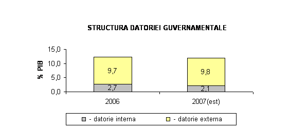 În anul 2006 finantarea deficitului bugetar s-a realizat în proportie de 84,3% din surse interne, iar în anul 2007 finantarea deficitului bugetar se va realiza, în principal, din surse interne. Datorita unor politici fiscale prudente cât si a reducerilor costurilor aferente noilor împrumuturi urmare a îmbunatatirilor succesive ale ratingului suveran, povara serviciului datoriei guvernamentale s-a redus gradual si este uniform distribuita pentru anii urmatori.