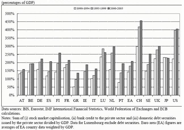 Ţari precum Austria, Franta, Germania, Marea Britanie, Hong Kong, Japonia, Olanda si Elvetia au sisteme bancare active. Pe de alta parte, Argentina, Columbia, Costa Rica, Ghana, Nepal, Nigeria, peru, Turcia si Zimbabwe au sisteme bancare nedezvoltate si mai curānd inactive. Elvetia, Coreea, Olanda, Africa de Sud, Suedia si Statele Unite ale Americii au o piata de capital foarte dezvoltata. Īntr-adevar, īn SUA, Suedia si Coreea, volumul creditelor acordate sectorului privat de catre intermediari financiari nebancari este mai mare decāt cel al creditelor acordate de sistemul bancar.