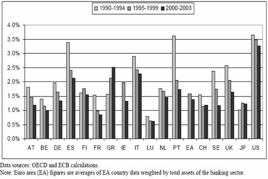 * marja bancara neta (raportul dintre marja bancara bruta si total activ) īn sensul ca o marja bancara mica e asociata cu eficienta si concurenta.