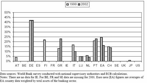 Tabelul arata prezenta majoritara a statului actionar la banci īn Germania, Portugalia si Grecia. Nu exista o asemenea situatie īn Marea Britanie sau Spania.