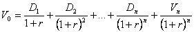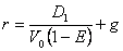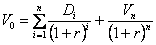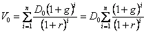 Potrivit relatiei, valoarea prezenta a unei actiuni comune este data de suma tuturor platilor viitoare de dividende actualizate indiferent de orizontul investitiei. Estimarea dividendelor fiind greu de înfaptuit , în practica se considera o rata constanta de crestere a dividendelor g (unde g<r), si atunci putem scrie: