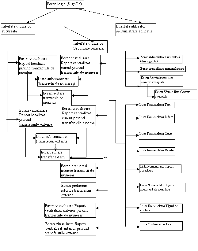 1.1 Descrierea generala a procesului 4.2.14 Ecran vizualizare Raport centralizat curent privind tranzactiile de numerar 4.2.16 Ecran vizualizare Raport localizat privind tranzactiile de numerar 4.2.17 Ecran vizualizare Raport centralizat curent privind transferurile externe 4.2.19 Ecran vizualizare Raport localizat privind transferurile externe 4.2.20 Ecran editare tranzactie de numerar 4.2.21 Ecran editare transfer extern 4.2.26 Ecran editare comparativa tranzactie de numerar 4.2.27 Ecran editare comparativa transfer extern |