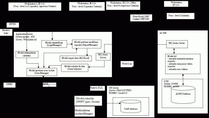 Comunicatia AS400 - Application server va fi trealizata prin MQSeries, scripturile Java si parametrarile pentru gestionarea transmisiei prin coada de mesaje fiind realizate in cadrul Departamentului IT al bancii.