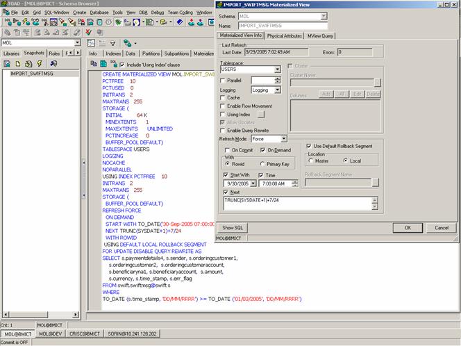 Sistemul se interfateaza cu aplicatia Confirmari Swift prin acces direct la baza de date a acestei aplicatii.