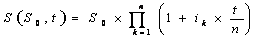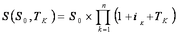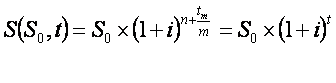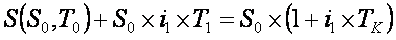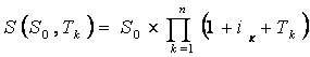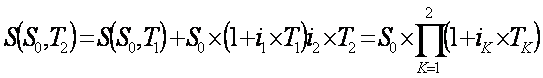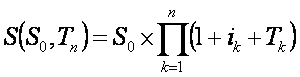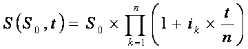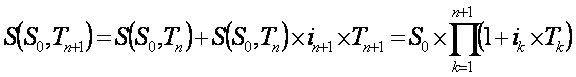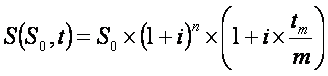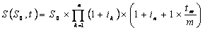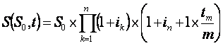 S = 100000 x (1,05) x (1,06) x (1,07) x (1,08) x (1,09) x (1+ 1,1 x 3/12)=