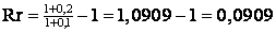 Când rata inflatiei Ri = 10% iar Rn = 20% vom avea: