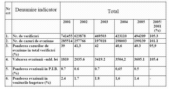 Urmarirea evolutiei fenomenului evaziunii fiscale pe baza unor indicatori, care sunt: numarul cazurilor de evaziune identificate, rata cazurilor de evaziune fiscale in totalul verificarilor, ponderea evaziunii fiscale identificate in PIB si in totalul veniturilor bugetului general consolidat, permite desprinderea unor concluzii privind stabilirea masurilor pentru prevenirea si combaterea evaziunii fiscale.