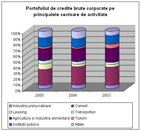 Concentrarea portofoliului de credite acordate clientilor în functie de sectorul economic la data de 31 decembrie 2005, 2004 si 2003 se prezinta astfel: