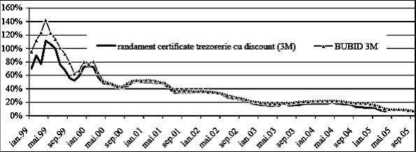Analiza dobânzilor practicate atât pe piata interbancara, cât si de Ministerul Finantelor Publice prin intermediul randamentelor certificatelor de trezorerie cu discont arata ca evolutia ratei dobânzii în economia româneasca a fost una coordonata, determinata atât de necesitati ce tin de politica monetara, cât si de cea fiscala. [6]