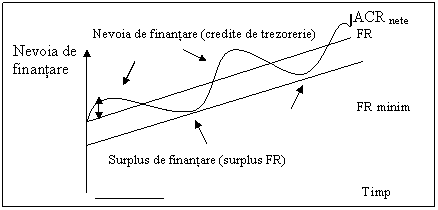 Deci, FR trebuie sa fie minim si trebuie sa acopere ACRnete minime si permanente urmând ca surplusurile ACRnete sa fie acoperite din credite de trezorerie sau alte credite pe termen scurt mai ieftine (a se vedea figura de mai jos).