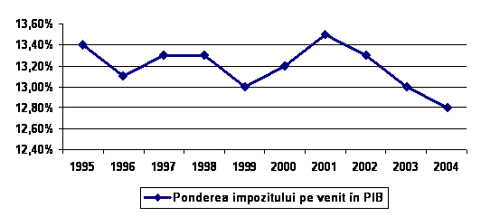Ponderea detinuta de impozitul pe venit in produsul intern brut al Belgiei intr-o perioada de zece ani calendaristici, respectiv 1995 – 2004, este reflectata in tabelul urmator: