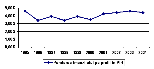 Analiza efectelor impozitului pe profit asupra nivelului veniturilor publice poate fi efectuata pe baza a numerosi indicatori specifici. Unul dintre acestia, respectiv ponderea incasarilor de natura impozitului pe profit in produsul intern brut, este prezentat in tabelul urmator: