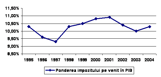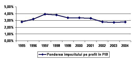 Ponderea impozitului pe profit in produsul intern brut pentru anii 1995 – 2004 este redata in tabelul urmator: